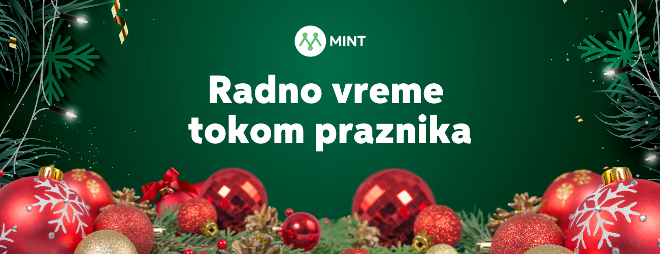 U predstojećem periodu novogodišnjih i božićnih praznika, sve upite i tikete i dalje možete slati na email podrska@mint.rs ili putem ticketing sistema Moj Mint. U periodu od 1. do 3. januara, kao i za Badnje veče i Božić može se očekivati sporiji odziv korisničke podrške.
